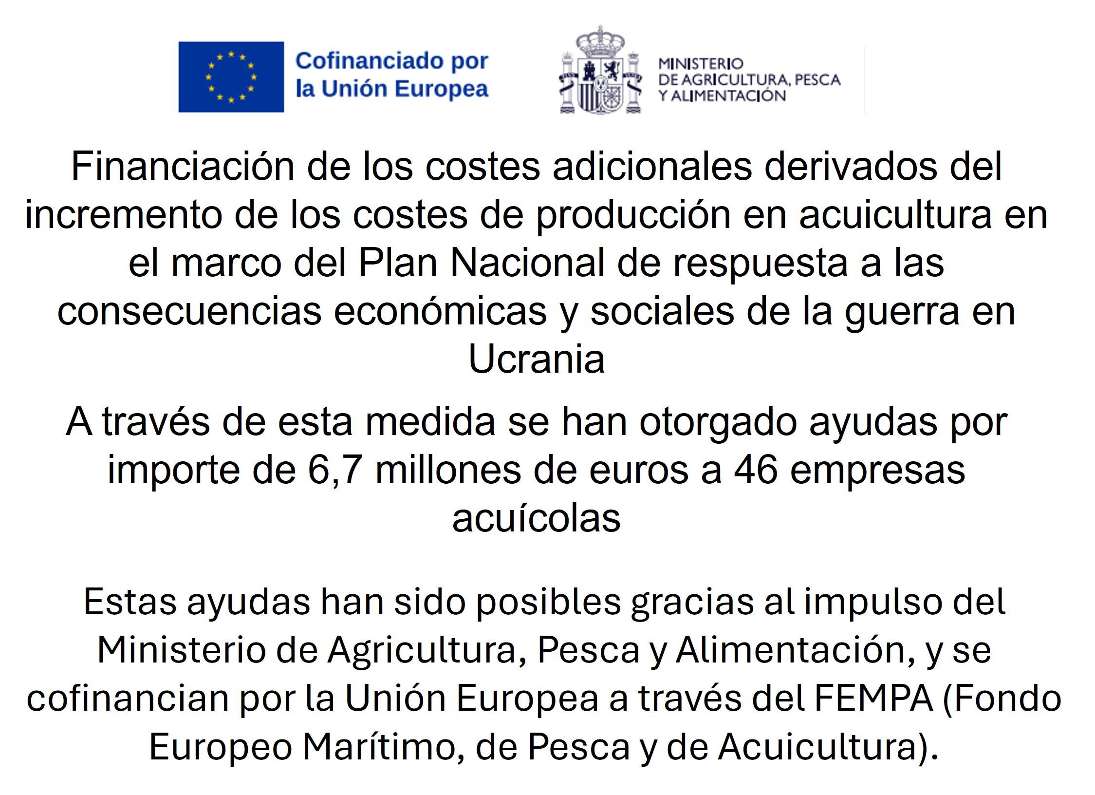 Financiación de los costes adicionales derivados del incremento de los costes de producción en acuicultura en el marco del Plan Nacional de respuesta a las consecuencias económicas y sociales de la guerra en Ucrania.
